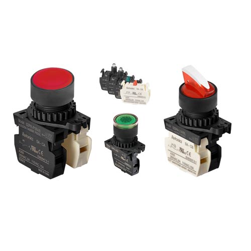 Autonics Control Switch Accessories: Various accessories are available, including switch contact blocks, switch boxes, emergency switch nameplates, waterproof caps, and more